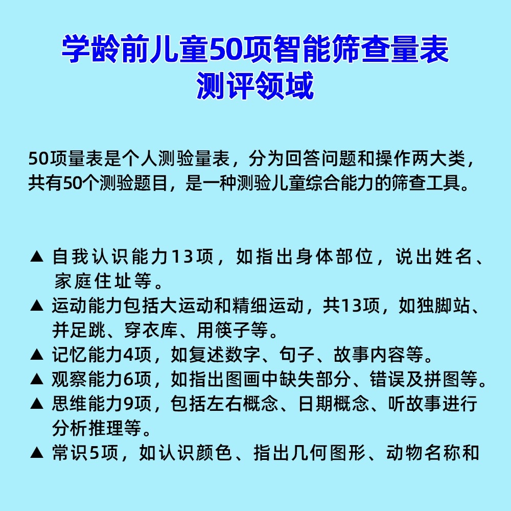 學(xué)齡前兒童50項(xiàng)智能篩查量表工具箱小兒智力發(fā)育篩查